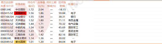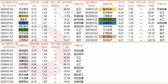 1,新进和增持的隐形重仓股,主要分布在化工、电子板块。