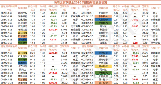 一,增持化工和电子股,与高毅撞车山东赫达,和冯明远共同持有法拉电子
