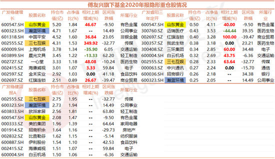 1,傅友兴旗下基金的隐形重仓股主要分布在有色、医药、TMT以及家电纺织板块