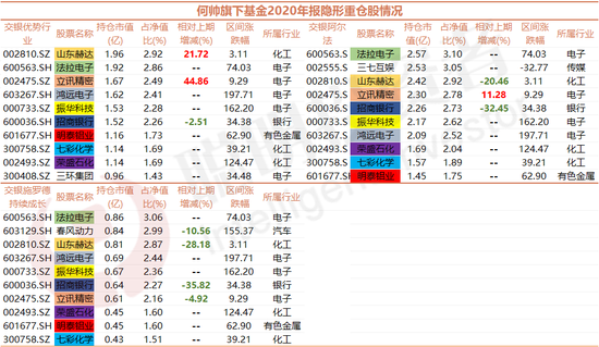 一,隐形重仓股主要分布在电子、化工、电气设备和有色板块