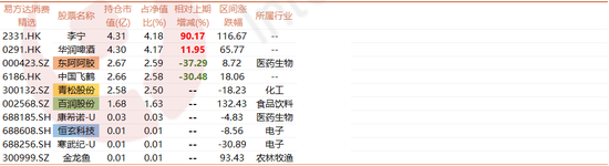 旗下4只基金均新进了农夫山泉,目前一共持有1.94亿市值。