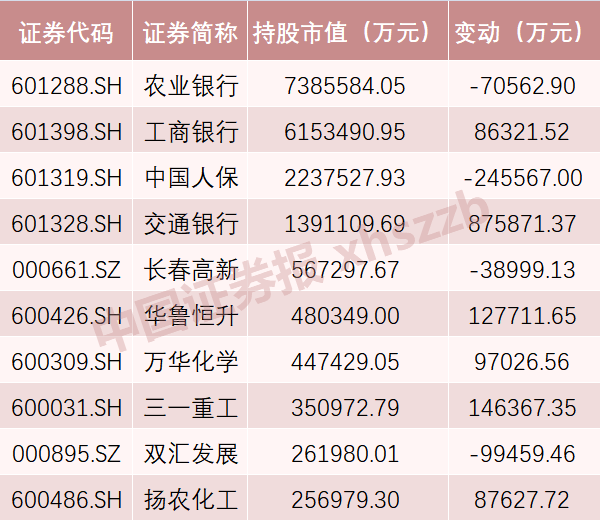 与2020年三季度末相比,社保基金增持市值最多的公司是交通银行,增持的市值达到87.59亿元,增持市值前十的公司还有三一重工、华鲁恒升、金风科技、长城汽车、万华化学、扬农化工、云南白药、工商银行、宏发股份。减持市值最多的是中国人保,减持市值达24.56亿元,此外还有双汇发展、安琪酵母、农业银行、中炬高新、紫金矿业、数据港等公司。