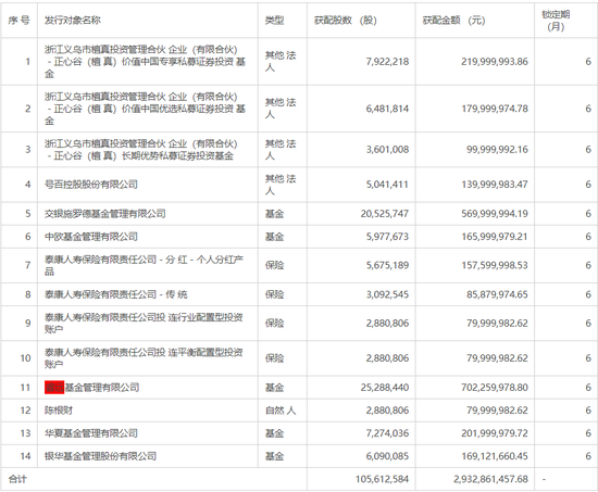 3月,三七互娱还曾发布公告称,正心谷、睿远基金和交银施罗德基金均参与了其定增,分别认购5亿元、7亿元和5.7亿元。此外,睿远基金今年还参与了上机数控、福莱特等公司的定增,景林资产今年也出手参与了新宝股份、福莱特的定增。