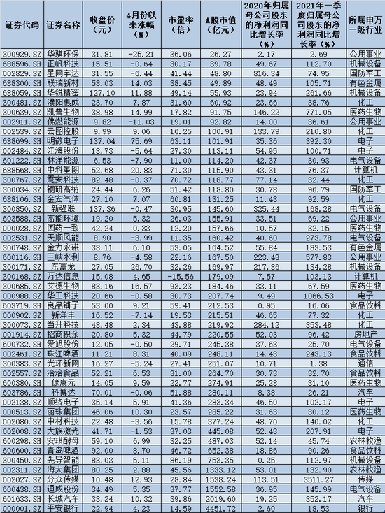 最后,月内股价表现相对较强。4月份以来,上述48只个股中有31只个股股价出现不同程度的上涨,占比64.58%。明微电子、东富龙、中科星图、艾德生物、凯普生物、联瑞新材、分众传媒、华锐精密、长城汽车、丽珠集团等个股期间累计涨幅均在10%以上。