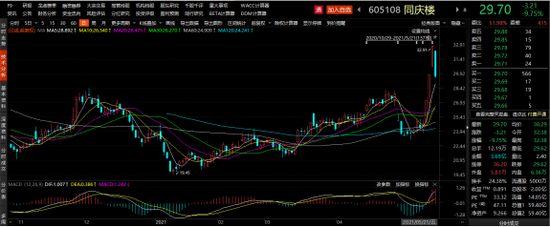 拥有近期热门的预制菜概念的次新股同庆楼本周北向资金增仓比例居首,达到2.96%。从股价走势方面来看,同庆楼本周二至周四拿下三连板。天风证券刘章明等人5月4日发布的研报指出,同庆楼作为老字号品牌发掘宴会市场,发力婚礼市场,直营连锁、标准化模式实现快速扩张。公司2021年计划新开10家门店,未来计划向其他省市地区扩张,规模扩张速度超预期,同时新成立食品业务打开新的增长空间。公司将把握未来3年的黄金时期,继续坚持连锁直营,运营标准化模式,实现门店快速扩张、规模快速扩大,抢占国内市场,同时重视菜品研发创新和人才培育储备,未来值得期待。