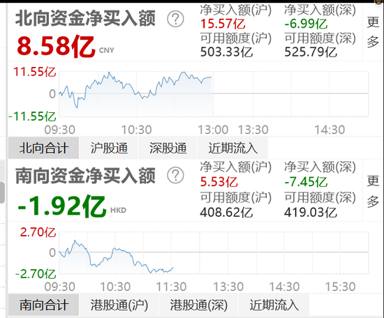 午评:北向资金净流入8.58亿元 沪股通净流入15.57亿元