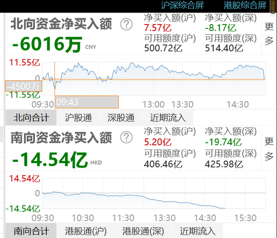 沪深股市深V走势,北向资金尾盘小幅流出,截至收盘,北向资金净流出0.6亿元,沪股通净流入7.57亿元,深股通净流出8.17亿元。