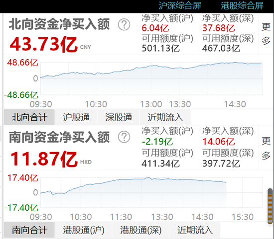 北向资金净买入43.72亿元 沪股通净买入6.04亿元