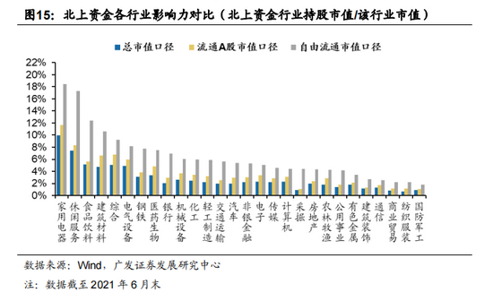 存量-行业影响力:北上资金在家电的持股占自由流通市值之比约为18.40%,相比5月份的19.14%有所下降。