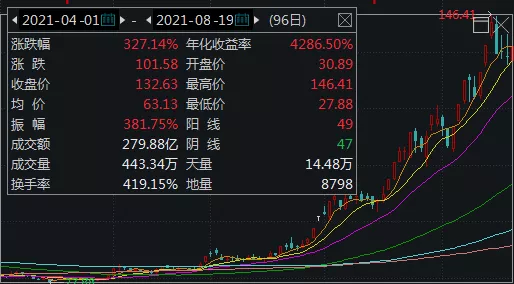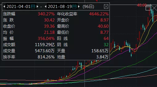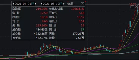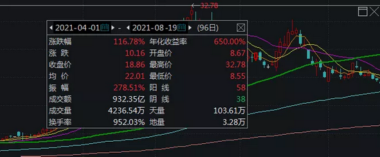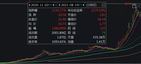 从2020年11月初启动,此后股价便一路飙涨。尽管近期有所回调,但江特电机累计区间涨幅仍超过了十倍,成为锂电池绝对的大牛股之一。