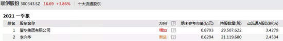早在今年一季度,李兴华便已“潜入”联创股份。据联创股份今年一季报显示,李兴华大举买入后共持有2111.96万股,期末参考市值6294万元,但此轮上涨过后,李兴华已赚取了不菲收益。