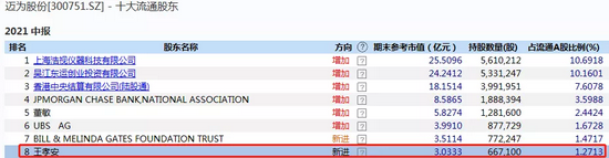据光伏设备公司迈为股份最新披露的半年报显示,王孝安以66.71万股的持仓股数,进入前十大流通股东,期末持仓市值为3.03亿元。
