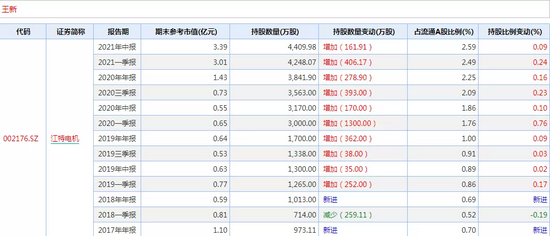 据江特电机最新的半年报显示,王新共持有公司4409.98万股股份,期末参考市值高达3.39亿元。