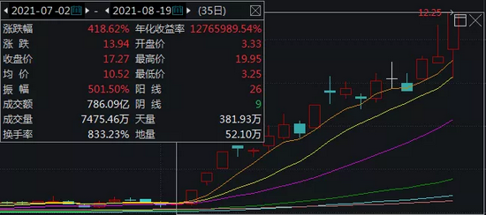 从2021年7月2日以来,联创股份股价从3.33元/股一路飙升,截至8月19日最新股价已达到17.27元/股,区间涨幅远远超过锂电细分板块涨幅。