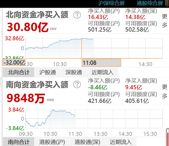 午评:北向资金半日净流入30.8亿元 沪股通净流入16.43亿元