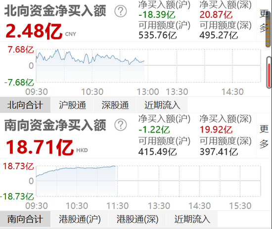 午评:北向资金净流入2.48亿元 沪股通净流出18.39亿元