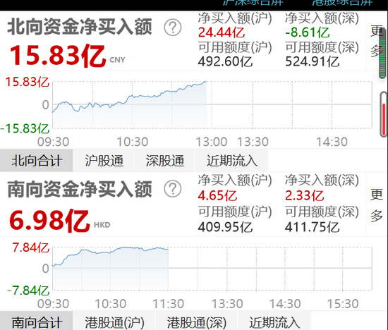 午评:北向资金半天净流入15.83亿元 沪股通净流入24.44亿元