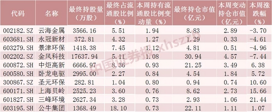 从市场表现来看,本周北向资金持有流通股比例增加前十的股票涨多跌少。其中,金风科技跌幅最大,累计下跌7.44%;三峰环境涨幅最大,累计上涨21.44%。