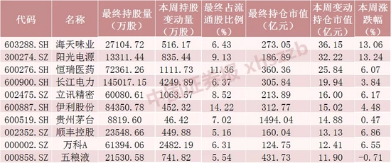 从持仓市值变动情况来看,Choice数据显示,本周北向资金对19只股票的持仓市值增加超过5亿元,其中对海天味业、阳光电源、恒瑞医药持仓市值增加金额居前,分别增加36.15亿元、32.22亿元、25.84亿元。