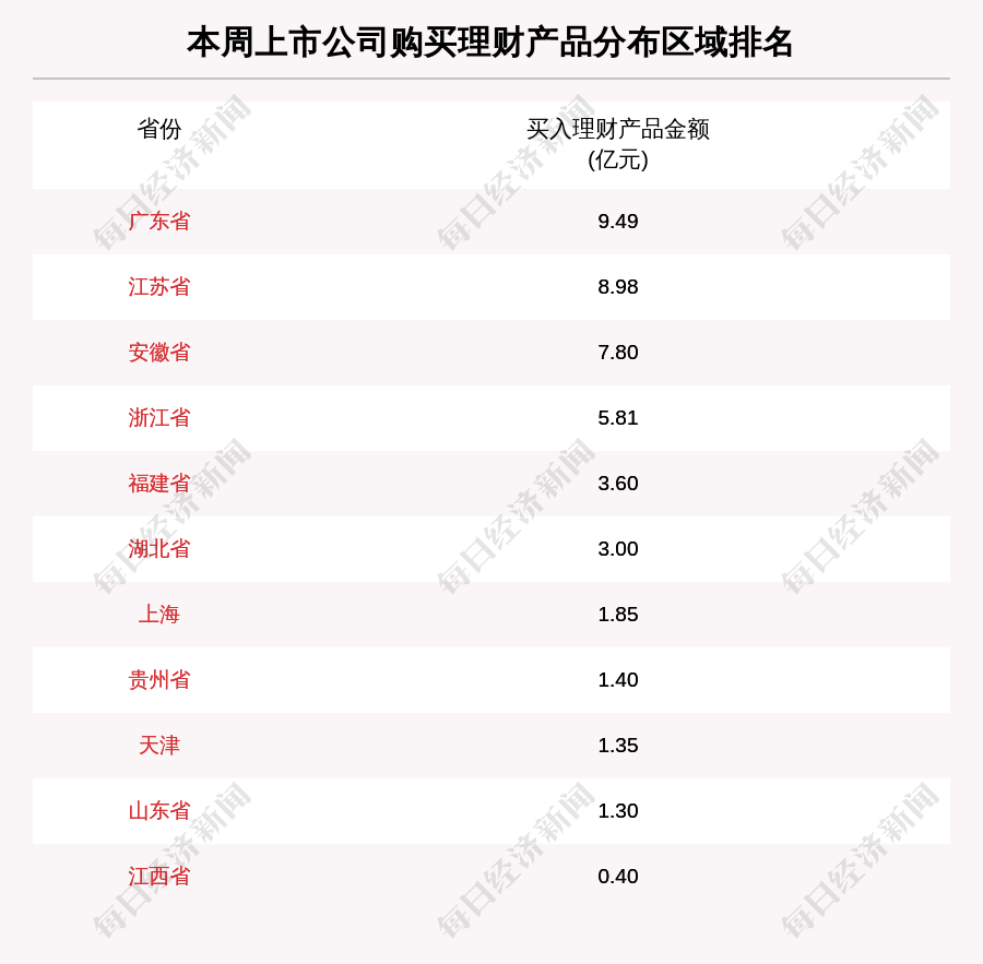 从上市公司所属地区上来看,本周买入理财产品金额排名前三的地区分别是广东省、江苏省、安徽省。