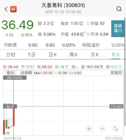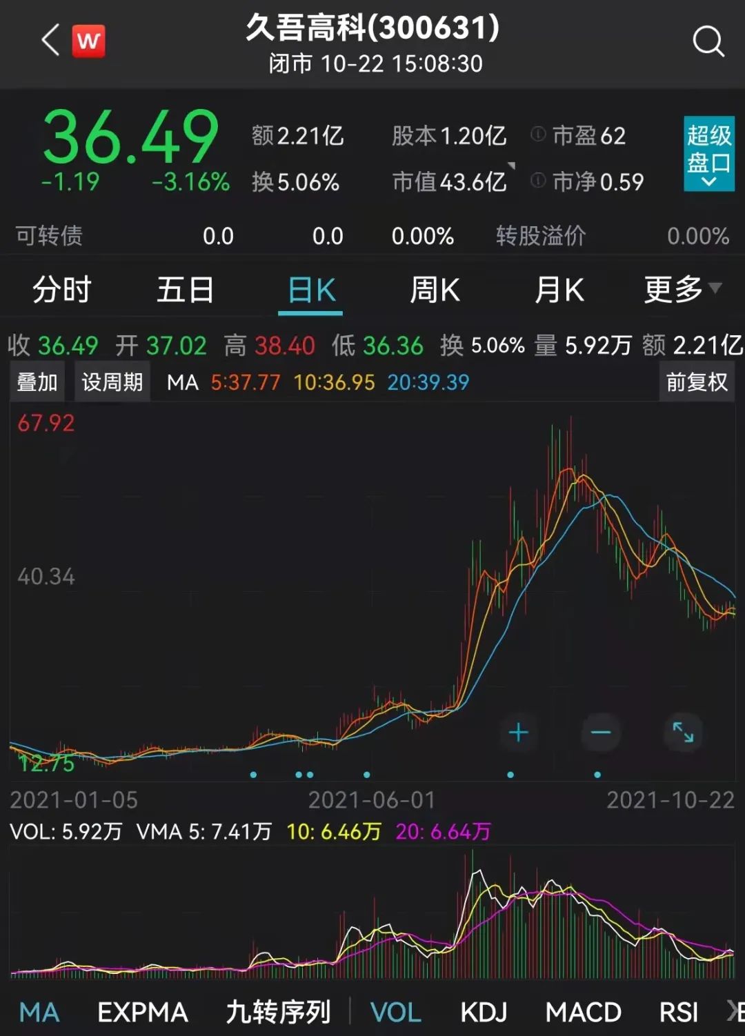 今年以来,久吾高科股价累计涨幅达112.40%。