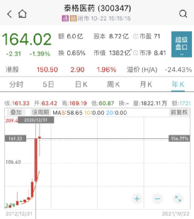 去年全年,泰格医药股价累计涨幅高达156.77%。