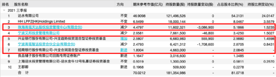 10月24日,良品铺子披露三季报,截至三季报,由谢治宇管理的兴全合润持股数量从二季度末的77万股增至466.3万股。在三季度仍由董承非管理的兴全趋势投资也略加仓55.59万股,目前由谢治宇等三人管理。值得注意的是,在今年二季度,该只基金就已大举抄底良品铺子,成为其前十大流通股东。此外,高瓴天达股权投资管理中心(有限合伙)减仓308.69万股;宁波高瓴智远投资合伙企业(有限合伙)减仓170.86万股;外资巨头挪威中央银行已退出良品铺子前十大流通股东。