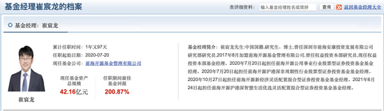 崔宸龙累计任职基金经理的时间只有1年又97天,是今年新生代基金经理的典型代表,也是一匹“黑马”,截至今年二季度末,其管理基金规模已达42.16亿。