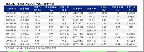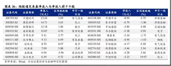 从交易型外资看,上周交易型外资主要净流入宁德时代、国瓷材料、招商银行、美的集团和万华化学,分别净流入23.26亿元、14.71亿元、12.18亿元、10.87亿元和9.31亿元;主要净流出中国平安、东方财富、中远海控、韦尔股份和璞泰来,分别净流出8.90亿元、6.79亿元、5.89亿元、5.38亿元和5.34亿元。