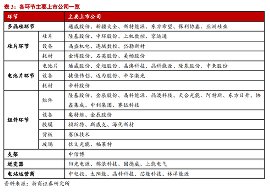 当前行业加速增长确定性强,产业链技术持续创新优化,技术领先企业有望加速扩展,市占率持续提升,并获得高于行业平均的盈利水平,业绩有望超预期。浙商证券建议关注5条主线:1)一体化龙头企业,业绩有望超预期(隆基股份、晶澳科技、天合光能);2)硅料供需仍偏紧,价格有望维持较高水平,龙头业绩确定性强(通威股份、大全能源);3)受益光伏+储能双轮驱动的阳光电源、锦浪科技、固德威;4)格局较好且长期成长确定性强的胶膜龙头企业福斯特、海优新材;5)其他环节的优质龙头企业,中信博、福莱特等。