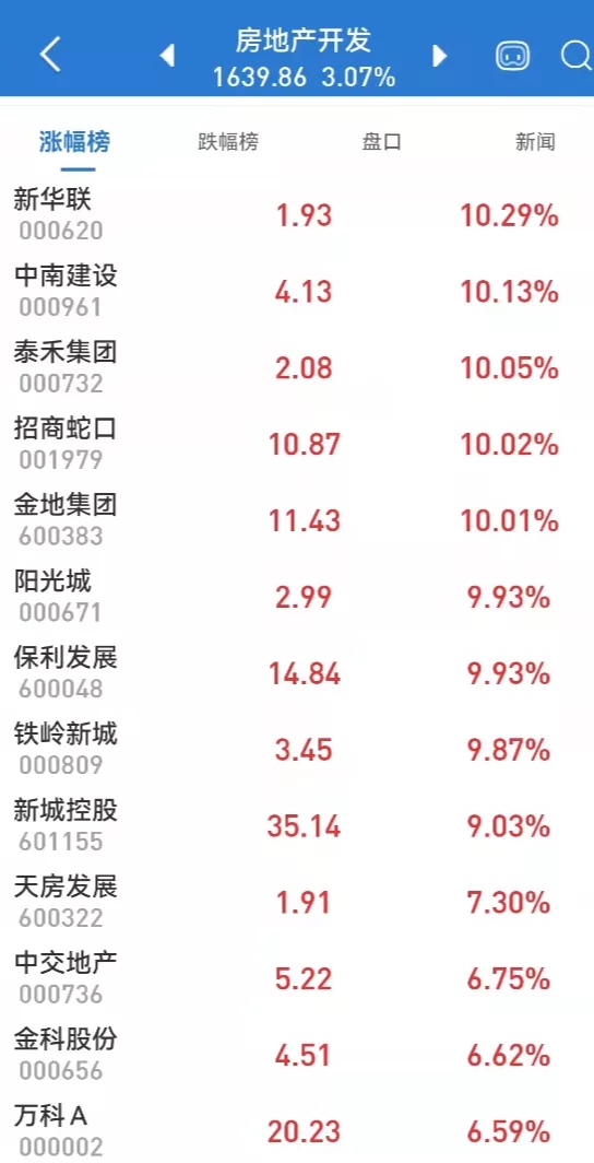 AH房地产股债基也联袂走强,H股方面,恒生地产分类指数盘中大涨近3%,恒生内地地产指数更是飙涨逾逾5%,为早盘港股上涨幅度最大的板块,粤海置地、嘉年华国际等纷纷强势拉升。A股房地产板块指数也大涨逾5%,领涨两市,特发服务20%涨停,新华联、泰禾集团、招商蛇口、阳光城等近10股也强势涨停。