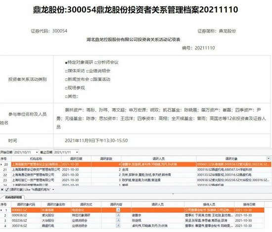 Choice数据显示,11月9日下午,景林资产基金经理蒋彤亲自调研鼎龙股份。10月30日,晶盛机电的业绩说明会则引得多家百亿级私募现身,比如和谐汇一资产、聚鸣投资、高毅资产、趣时资产等,其中高毅资产三大明星基金经理——卓利伟、孙庆瑞和邓晓峰罕见“同框”,亲自参与了晶盛机电的业绩说明会。