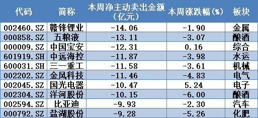 在净主动卖出方面,部分行业白马龙头股遭到“嫌弃”。下探半年线支撑的赣锋锂业被净主动卖出14亿元居首,白酒龙头五粮液也被净主动卖出13亿元。值得注意的是,借元宇宙概念前期3个连续涨停并周内创出近4年新高的国光电器,在高位放巨量下滑,被净主动卖出超过10亿元。