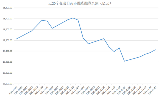在11月5日至本周四的5个交易日中(本周五的两融数据将由交易所在下一交易周的第一个交易日公布),两市融资融券余额在近1个月低点附近平缓反弹向上,保持在1.84万亿元附近。