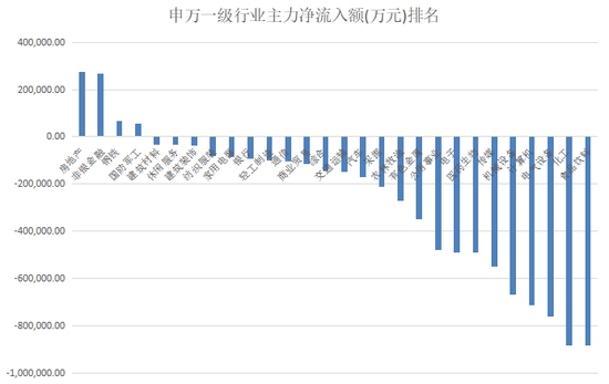 本周的探底反弹过程中,28个申万一级行业中有4个出现主力资金净流入,较上周大幅增加。净流入金额较为明显的是房地产行业和非银金融行业,均达到27亿元左右,显然是受益于本周房地产股和券商股强力反弹。同时钢铁行业和国防军工行业的净流入金额较低。