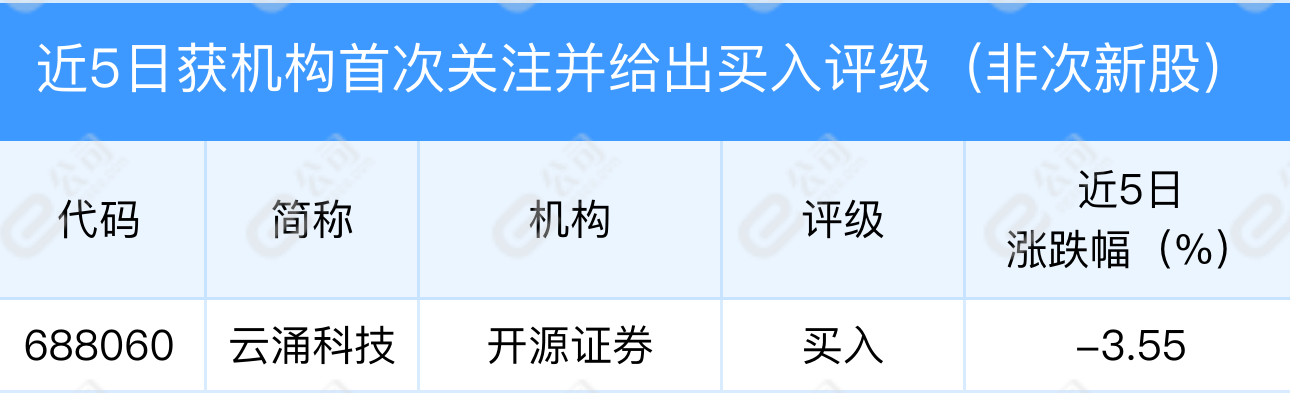 云涌科技等在5日内获得机构首次关注并给出买入评级。