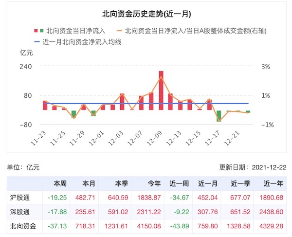 尽管国际机构普遍看好A股2022年的走势,且认为北向资金仍将有近2000亿元的流入,但很难与2021年匹敌。高挺对记者表示,早前外资加码A股主要受到两重因素影响:一是外资认为A股确实有一些海外稀缺的标的,例如白酒(H股也无白酒);二是海外市场情绪偏乐观、风险偏好较高时,也会带来相对充裕的资金流入A股,因为新兴市场在国际投资者心中是一个风险偏高的市场。今年,全球央行释放大量流动性,美股更是获得了近20%的涨幅。通联数据Datayes!的数据显示,截至12月24日收盘,北向资金年内净流入量达440亿元。