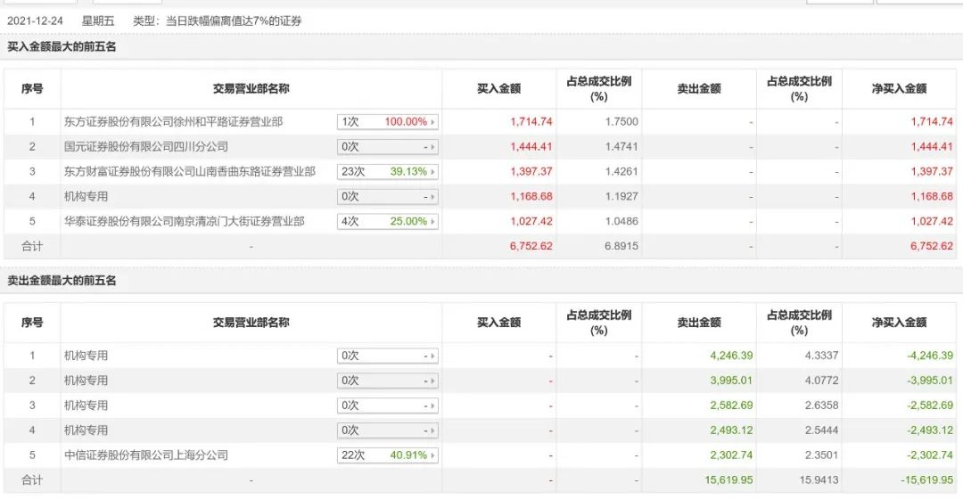 12月24日,锂电池板块的另一牛股龙蟠科技同样跌停。从龙虎榜数据来看,机构卖出态度更为坚决。具体而言,1家机构净买入1168.68万元,而卖出前五大席位中有4个机构席位,合计净卖出1.33亿元。