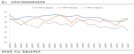 PMI连续两个月反弹,经济阶段性下行趋缓,稳增长的效果将逐渐显现。在经历三季度的失速下行后,10月以来宏观经济已有转暖迹象,下行斜率开始趋缓, 11月-12月PMI结束了之前连续七个月的回落,出现了连续两个月的反弹。具体来看,12月PMI为50.3,国内订单环比回升,生产与新出口订单均出现回落,表明在大宗商品价格回落的背景下企业加大采购力度。从结构上来看,大中小企业PMI依然处于分化状态,小型企业PMI在荣枯线下方继续回落,中型企业PMI连续两个月回升,大型企业PMI持续处于荣枯线上方,表明经济恢复的基础不牢固,小型企业仍面临经营困难。整体而言,一方面,前期拖累经济的部门出现下行趋缓的迹象,如30城地产销售11-12月回落幅度较9-10月明显收窄,稳增长的效果初步显现。但另一方面,经济复苏的基础不牢固,近期国内点状疫情防控形势依然严峻,小企业经营状况不容乐观,稳增长仍需进一步加力。