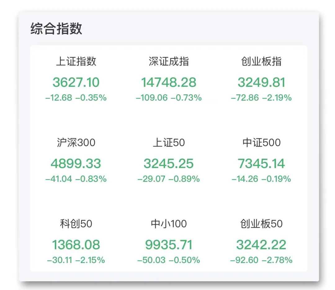 截至午间收盘,上证指数下跌0.35%,深证成指下跌0.73%,创业板指下跌2.19%。两市半日成交额超8100亿元,其中沪市成交额为3249.14亿元,深市成交额为4856.67亿元。