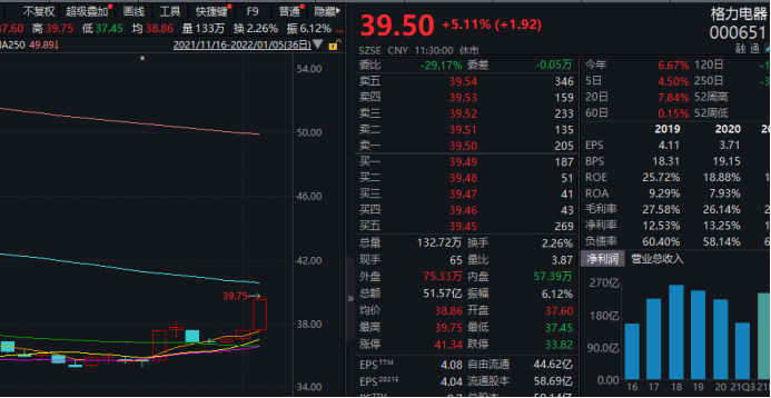 家电板块龙头公司中,格力电器盘中暴涨超过5%。刚刚过去的2021年,格力电器股价整体持续低迷,累计跌幅较大,但近期走势明显强于大盘,截至目前,格力市值超2300亿元。