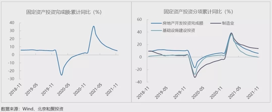 2021年经济走势前高后低,由于低基数逐渐消退,政策回归常态化,GDP增速逐季下行,2021年三季度GDP同比增长4.9%,而且预计四季度同比增长继续放缓。包括PMI、社融等经济先行指标全面回落,下行压力凸显,经济转弱对投资和消费又会有压制。
