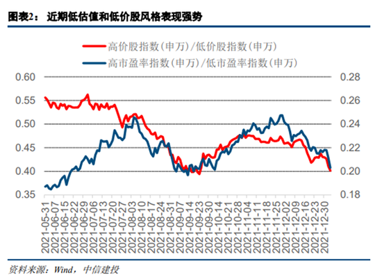 陈果团队分析指出,近期市场风格发生了明显的变化,申万高价股/低价股指数和申万高市盈率/低市盈率指数双双下跌,显示出投资者在进行新一年资产配置的时候,对于高估值成长股和高价股板块的业绩持续超预期能力、高估值的维持能力出现了怀疑。