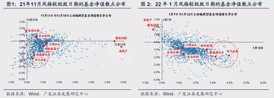 短期市场存在“负反馈”的阶段性风险:年初截止到本周五,A股普通股票+偏股混合型基金收益率中位数是-6%+,按照经验,在年初收益没有“安全垫”的背景下可能触发绝对收益产品的被动减仓,引发“负反馈”。今年年初即下跌、绝对收益产品的收益压力增大,部分谨慎或被动减仓,与去年2月中旬以“茅指数”为代表的热门股调整后触发减仓“负反馈”较为相似。如果出现负反馈的被动下跌则是阶段性见底的契机,预计发生在春节前。我们年初至今建议高区-低区均衡配置,从主动偏股型基金在去年11月与今年1月的净值散点分布来看,持仓较新能源的集中程度略有下降。