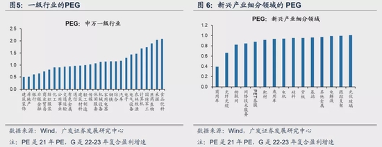 ●如何用PEG的思路进行低区-高区行业筛选?目前低区“稳增长”链条22年PEG较低的行业是建筑(0.51)、地产(0.52)、银行(0.61)、非银(0.62),二级行业是基础建设(0.47)、保险(0.49)、装修装饰(0.59)、消费建材(0.87)。此外我们在1.5《渗透率各阶段,新兴产业如何演绎?》提到本轮赛道股的调整空间接近阶段性尾声,同样用PEG思路筛选PEG占优的新兴产业为新能源整车(商用+乘用)、光纤光缆(0.66)、PET基膜(0.88)等。