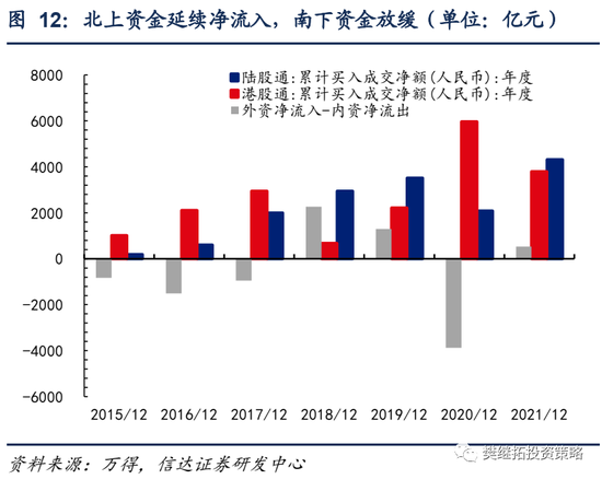 1.1 年度层面上,资金连续三年净流入A股,21年的净流入规模最高