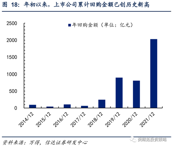截至2021年底,上市公司回购金额达2030.82亿元,已经创下2014年以来新高,且是2019年、2020年全年回购金额的两倍之多。