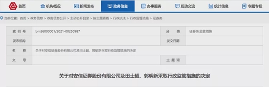 值得注意的是,安信证券及投行人员在去年也领过罚单。2021年8月,中国证监会对安信证券及保荐代表人田士超、郭明新采取行政监管措施。