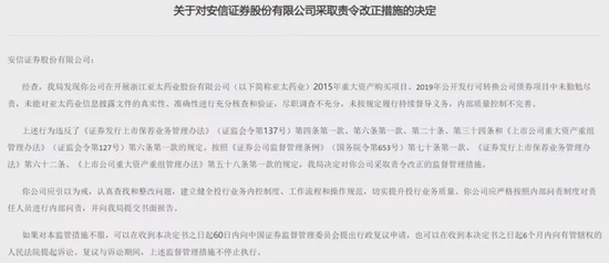 1、对安信证券采取责令改正措施;