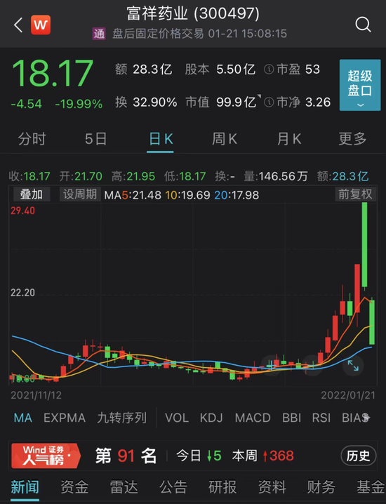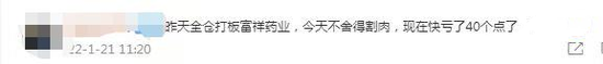 有股民表示,昨天满仓打板富祥药业,今天舍不得“割肉”,现在亏了快40个点。
